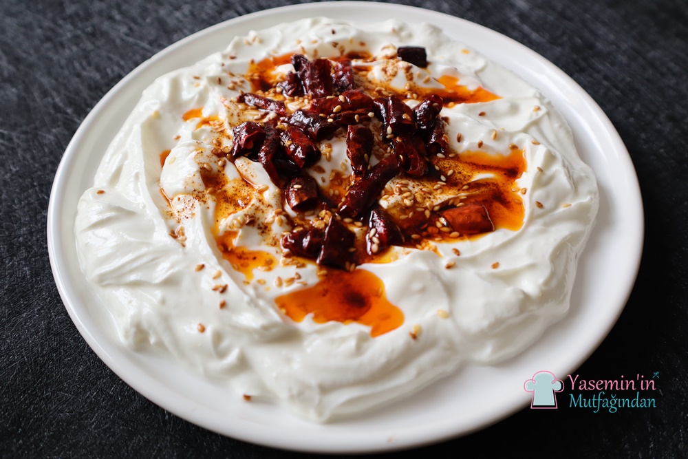 Yoğurdun içine sarımsak rendeleyip karıştırın. Servis tabağınıza sarımsaklı yoğurdu yayın.